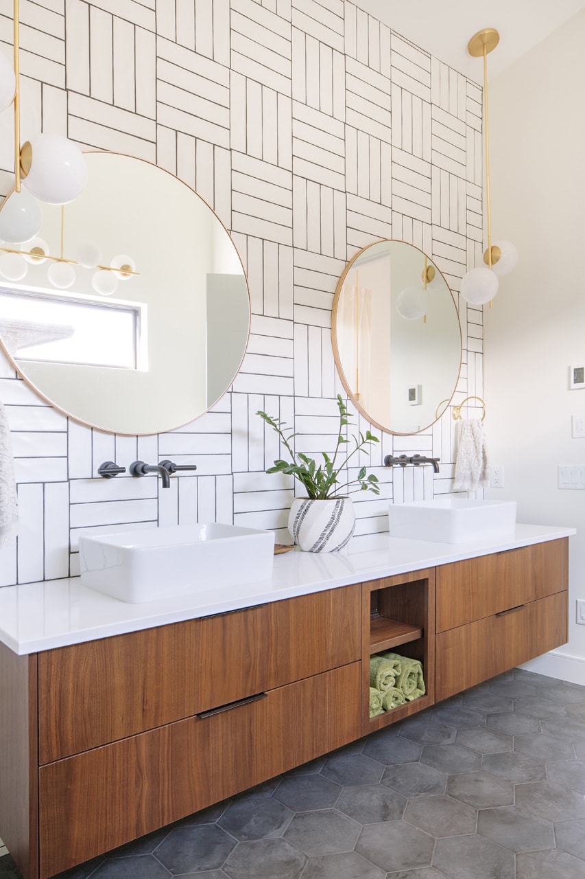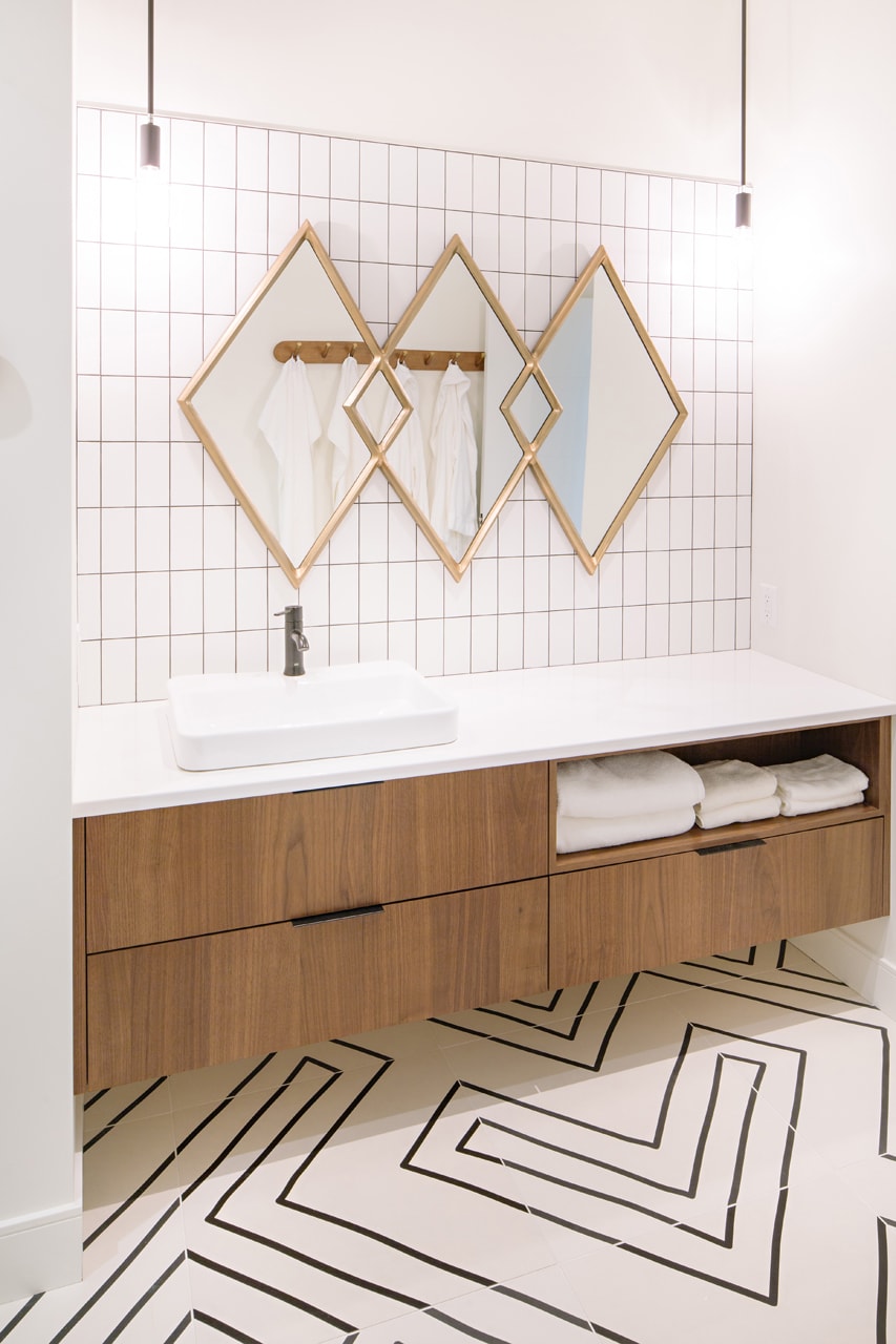 In collaboration with Fawdry Homes and Interior Designer Tori Blair, Legacy Designer Joanne Parker had the opportunity to inject Mid-Century Design into this new home build. Bold colors are paired with sleek details and dynamic shapes with luxurious metallics. Using Decor Allura Cabinets, Joanne designed this kitchen as a modern cooking paradise.
